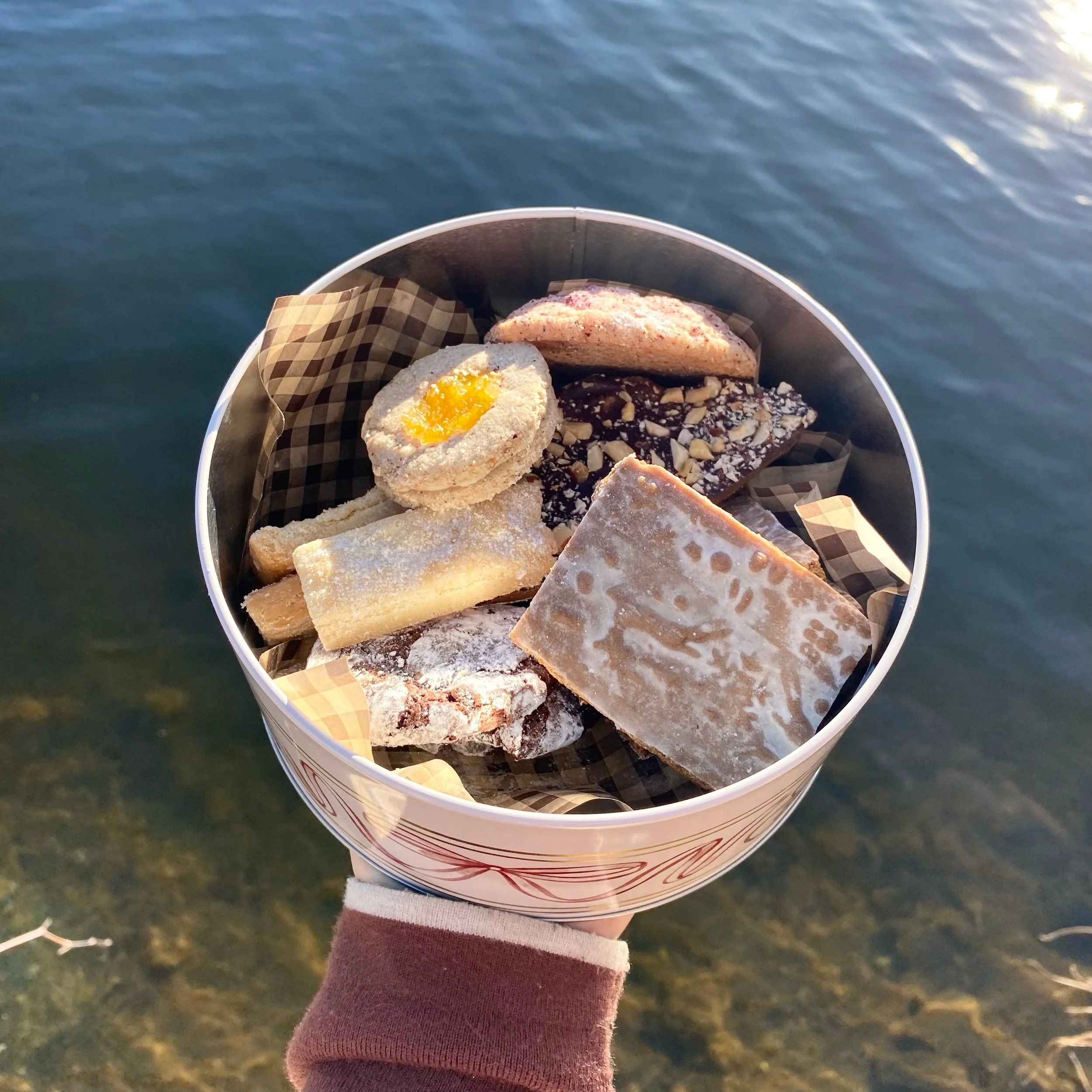 Available in a beribboned box or a giftable holiday tin. Makes a wonderful hostess gift or party offering. Gluten free boxes available upon request.